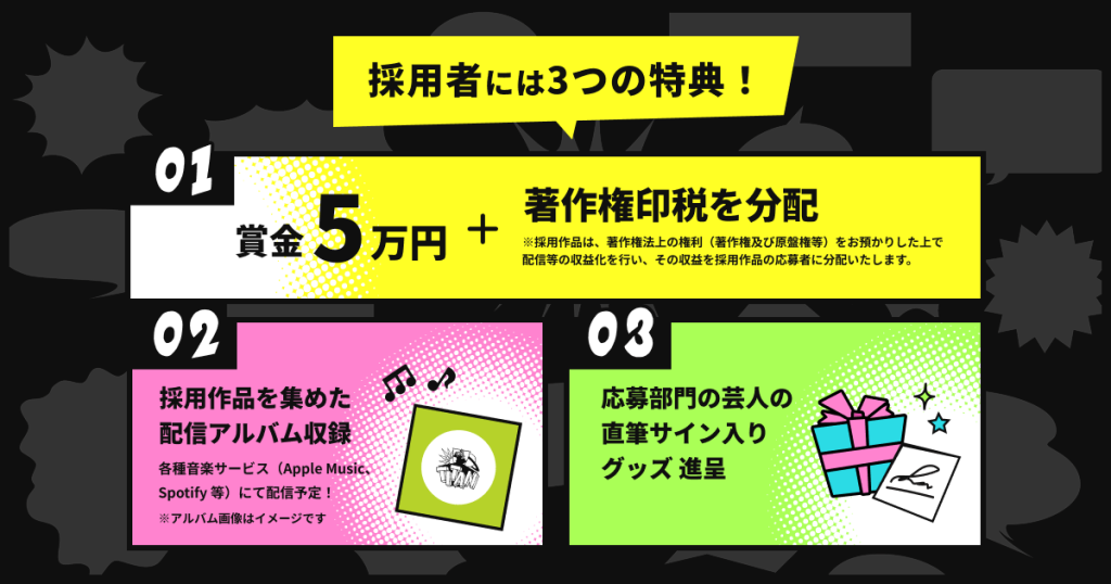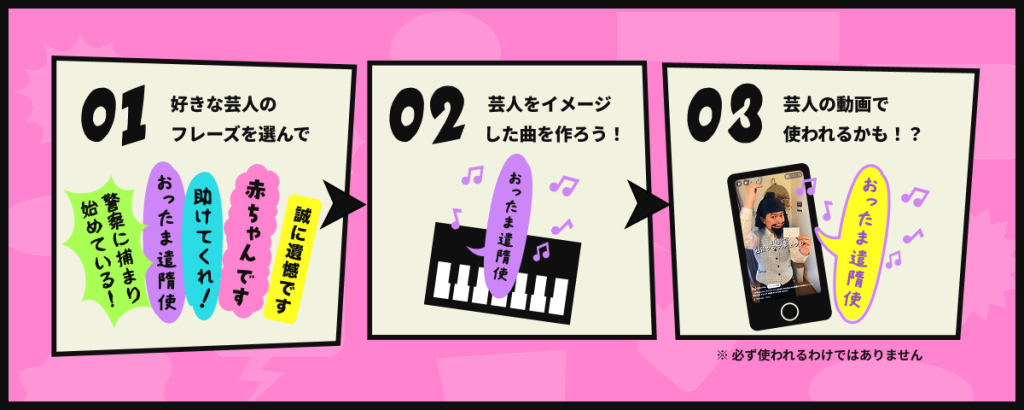 芸人のフレーズを使って、渾身の一曲を生み出そう!動画で使いたくなる楽曲を大募集